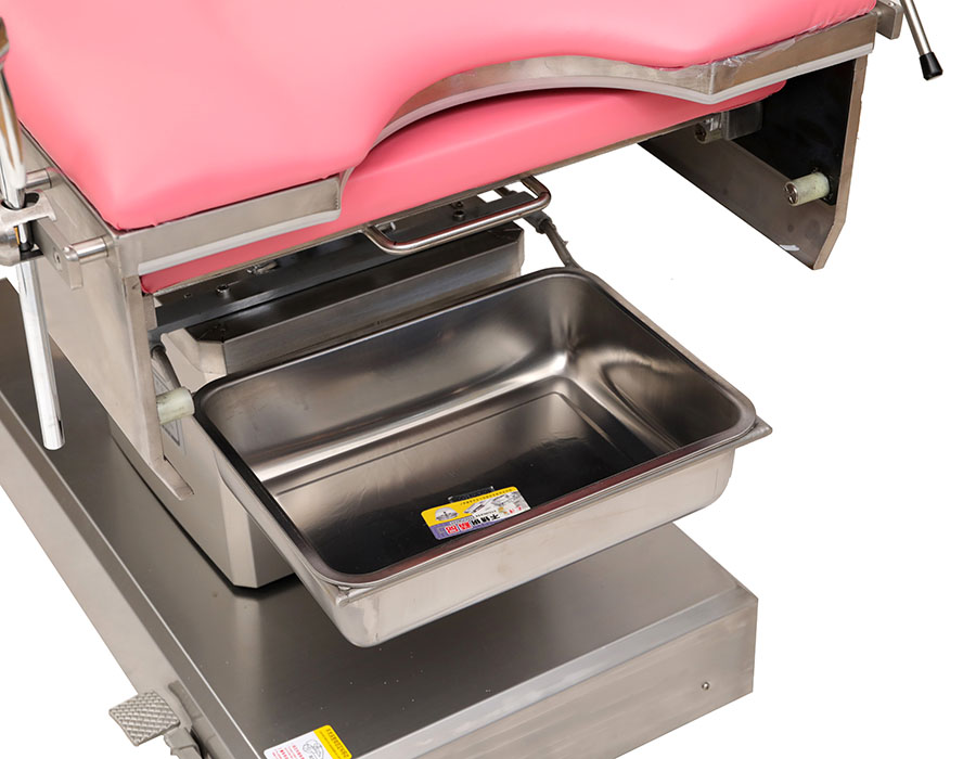 4、床體采用不銹鋼制成,外形美觀,易于清洗,內(nèi)藏抽拉式腿板輔助臺(tái),收納方便,配有可伸縮式不銹鋼污物盆,可防止分娩時(shí)羊水外濺,且使用便利;
