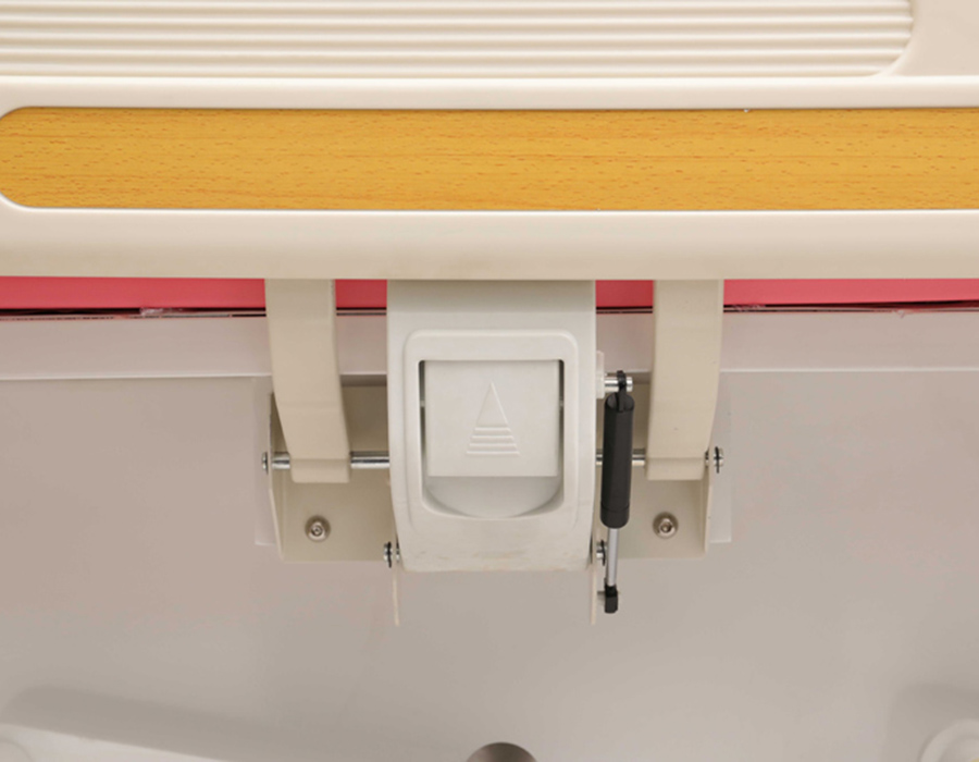 腳板裝置采用可控氣彈簧來調整以達到人體各部位的合理性,有助于產婦的順利分娩;床板下裝有隱藏式污物盒,以及脫卸式輔助臺,可根據臨床的需要進行變換;兩側托腿腳架及隱藏式扶手可調節角度及位置。